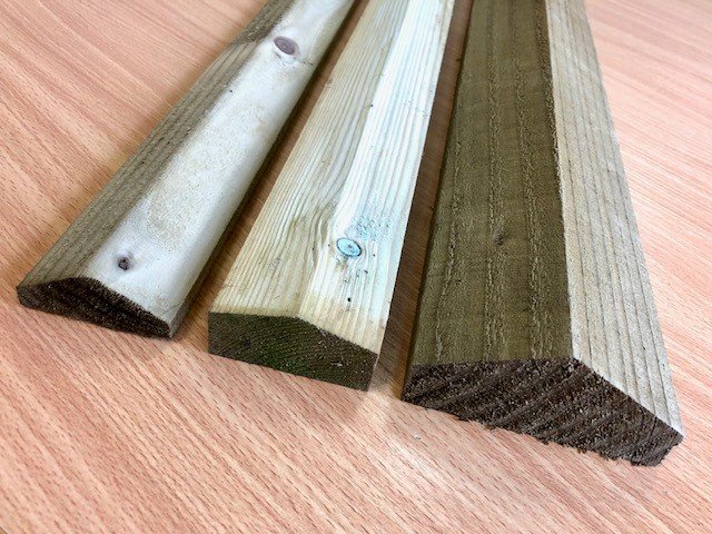 Fencing rails, pressure treated with Tanalith preservative.