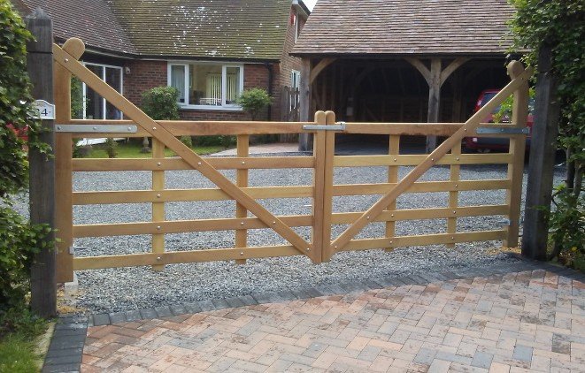 A traditional, planed entrance gate made from durable Iroko timber. Made to order - please contact us for prices and lead times.