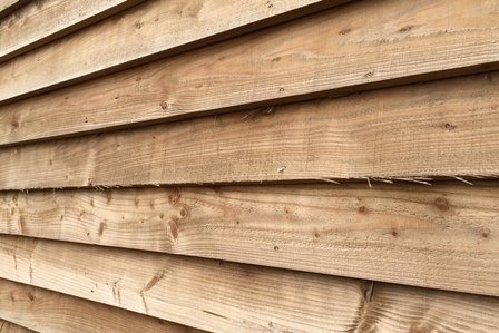 Heavy duty feather edge cladding boards, pressure treated with Tanalith preservative. Dimensions quoted are thickness (thick edge/thin edge) x width.