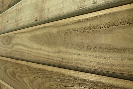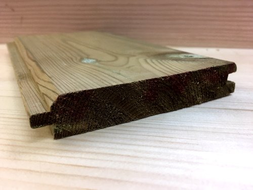 Planed tongue and groove shiplap, pressure treated with Tanalith preservative. Sizes quoted are FINISHED thickness and width.